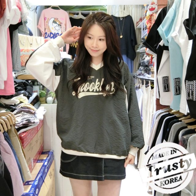 韓國V領併色衛衣